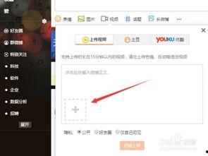 首先,你得有一个微博账号。如果你还没有,那就赶紧去注册一个吧!注册成功后,登录你的微博,点击首页右上角的“ ”号,选择“视频”。